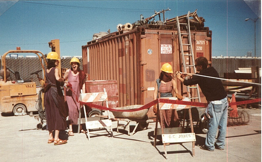 As Maren states on the videocassette box liner notes: "The Vanishing Line is a personal documentary by filmmaker and physician Maren Monsen. The film follows her journey to find new ways to face her dying patients. Using an intriguing combination of surreal imagery (that's me and the other two Goddesses) and documentary footage, the film juxtaposes a Greek myth about the inevitability of death against the Western medical model which views death as the enemy." The Goddesses include the one who spins the yarn (life symbolized by the string). This Goddess runs around with her spinning wheel. The Goddess who measures the yarn (the length of one's life) and she carries a yard stick. And the Goddess who cuts the yarn. That's me ending life with big hedge clippers. |
