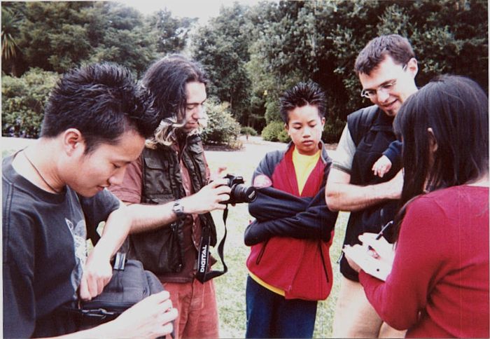 Just like any actor, I see a notice on an Internet audition site that looks like my kind of part and I forward my photo and resume. But this time, I get a call that I'm selected for a part in a movie, "Le Mort de Realite," no audition, just a shoot date. I'm told it's a play in many small parts, and all parts are about equal. That is all I know. And I go. The part - I'm a mother walking my baby in a stroller through the park. Sure, I can do that. I'm an actress. I've been trained. I'm a professional. First the crew gathers to discuss the shot. Director Michel Francois, is holding the camera. We're in Golden Gate Park by the duck pond at the Arboretum. So far, so good. |